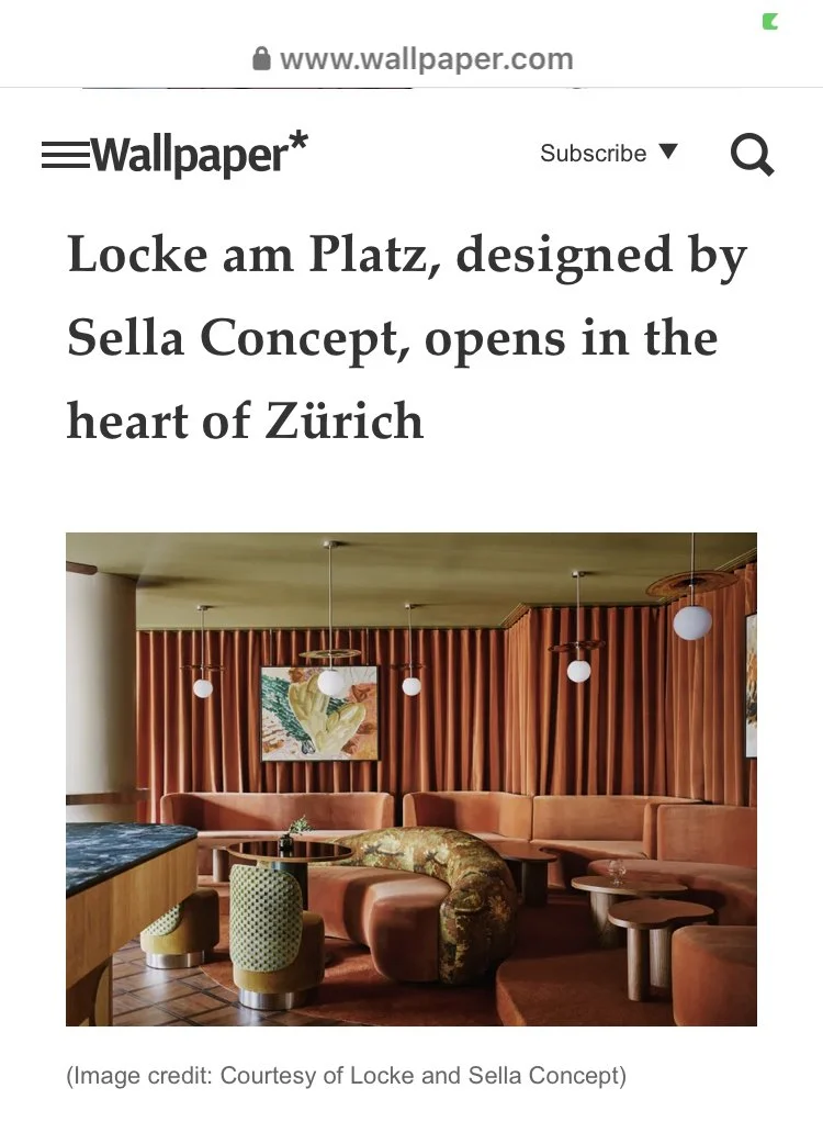 Wallpaper Magazine - Locke am Platz, designed by Sella Concept, opens in the heart of Zurich (Editorial Nov23)