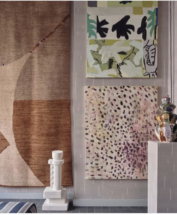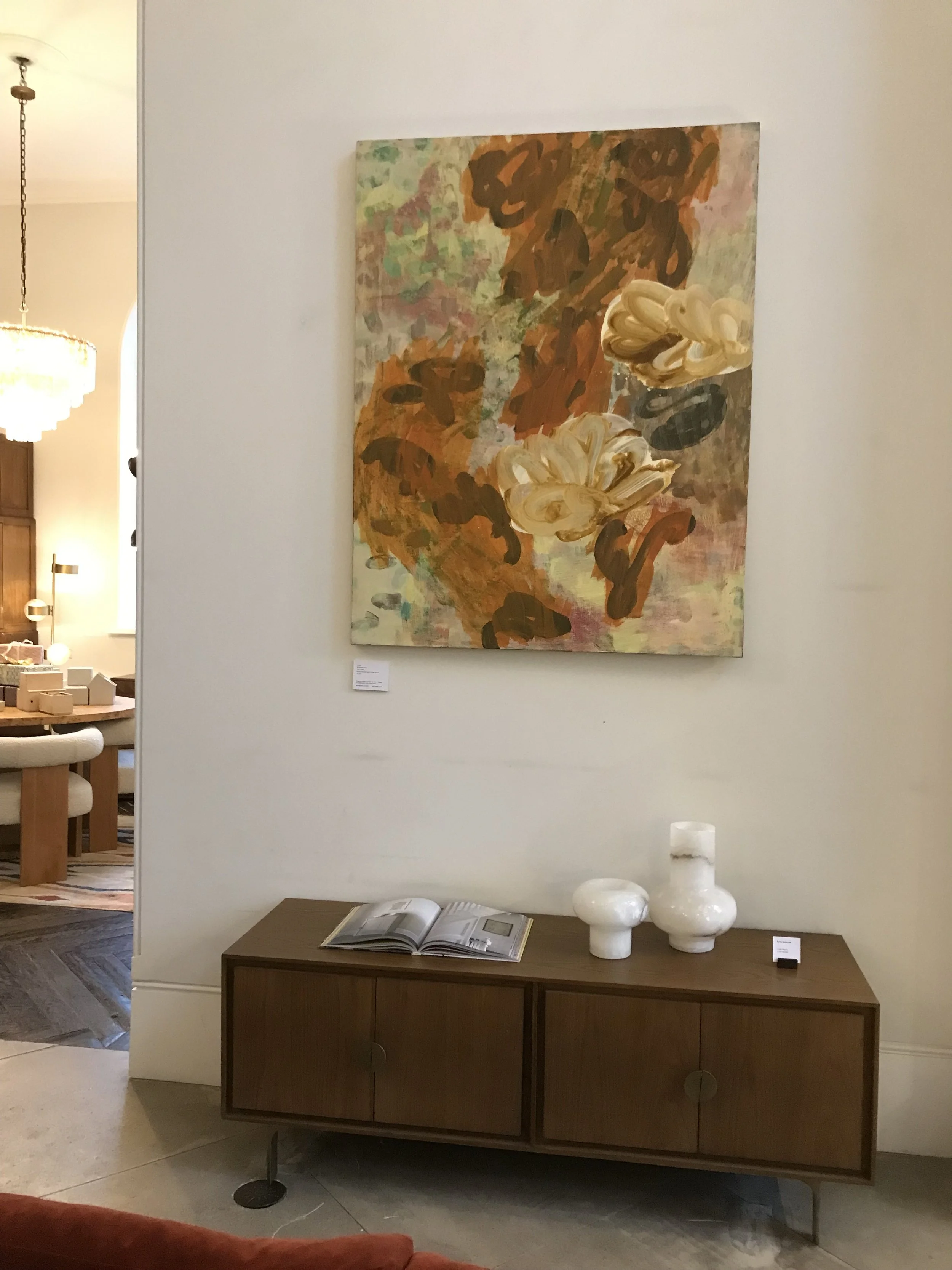 Honoured to have Spotty (acrylic on canvas 76 x 64cm) , alongside Sandra Blow rug design, part of The Gallerists Home exhibition at Christopher Farr Design, Chelsea Showroom London SW6. June - Sept 2023 © Photography Ben Anders